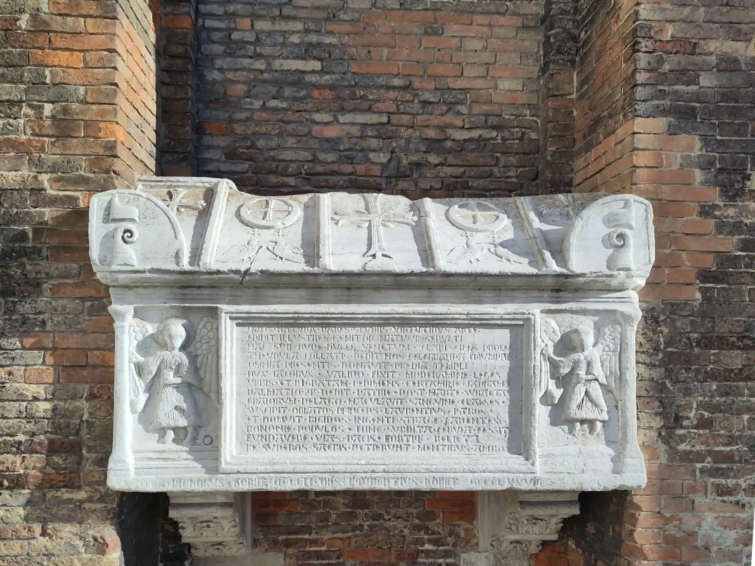The bottom inscription, just one line, is a bit enigmatic. It gives the year of death of Jacopo Tiepolo as 1251, while he died in 1249, and the year of the death of Lorenzo Tiepolo as 1278, but he died in 1275.